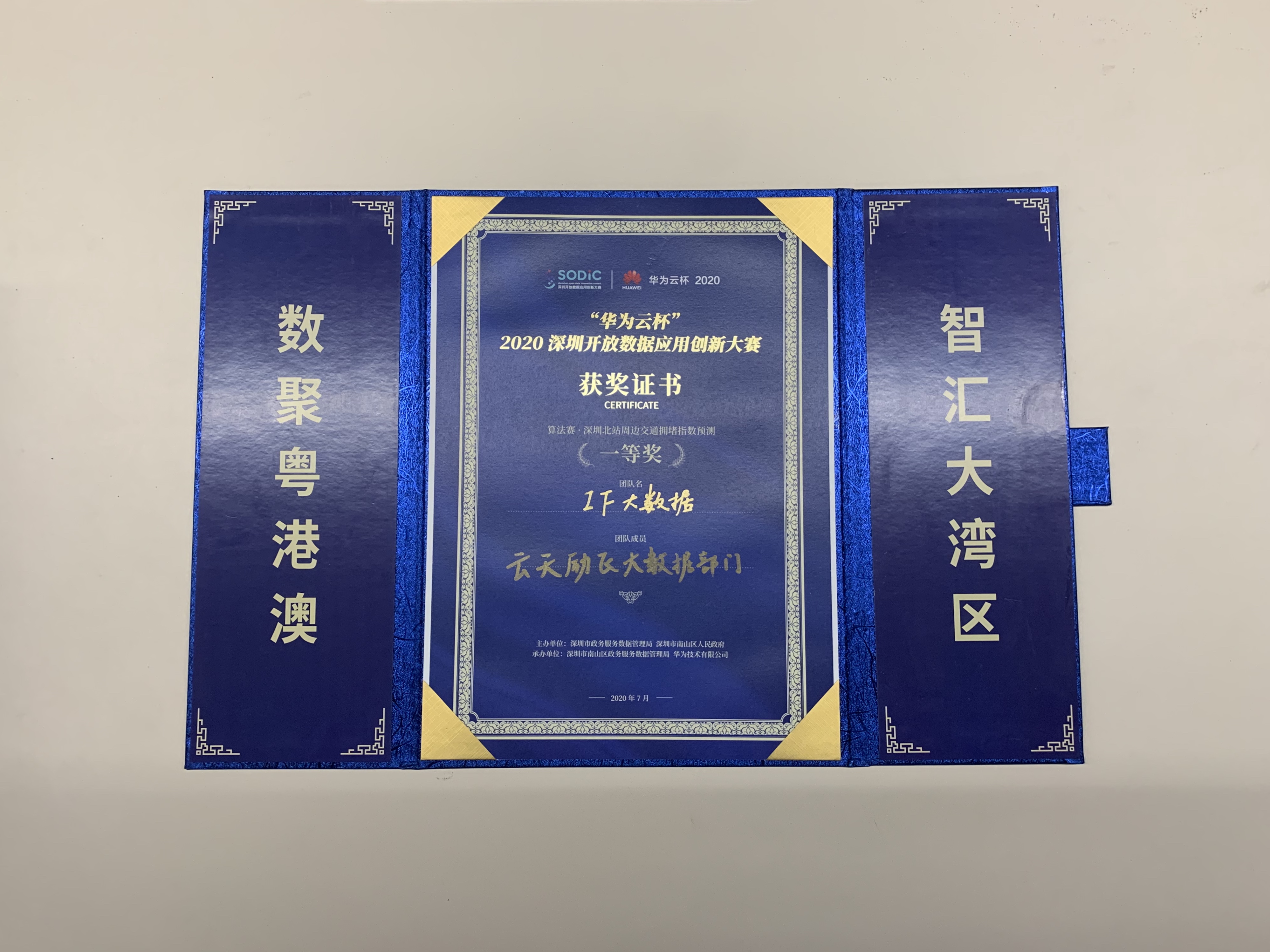 本次大赛共设置4个赛道,在以“深圳北站周边交通拥堵指数预测”为赛题的算法赛道比赛中,由PA真人 - 电子游戏官网大数据部成员组成的“IF大数据”团队荣获一等奖。
